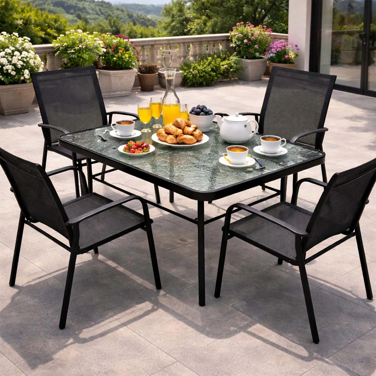 Mesa Terraza Vidrio y Acero 120x80x72cm Negra