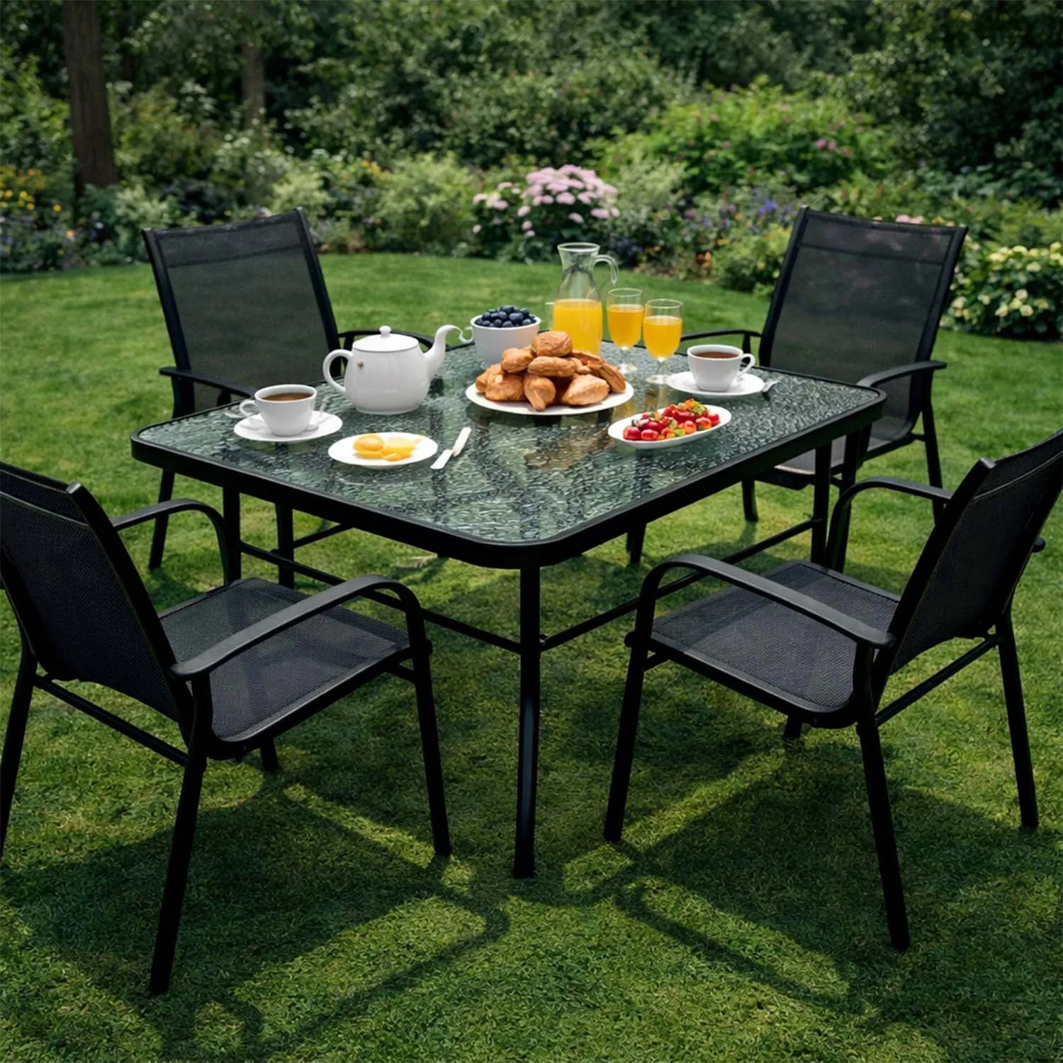 - Fácil de limpiar y mantener, perfecta para uso exterior todo el año.