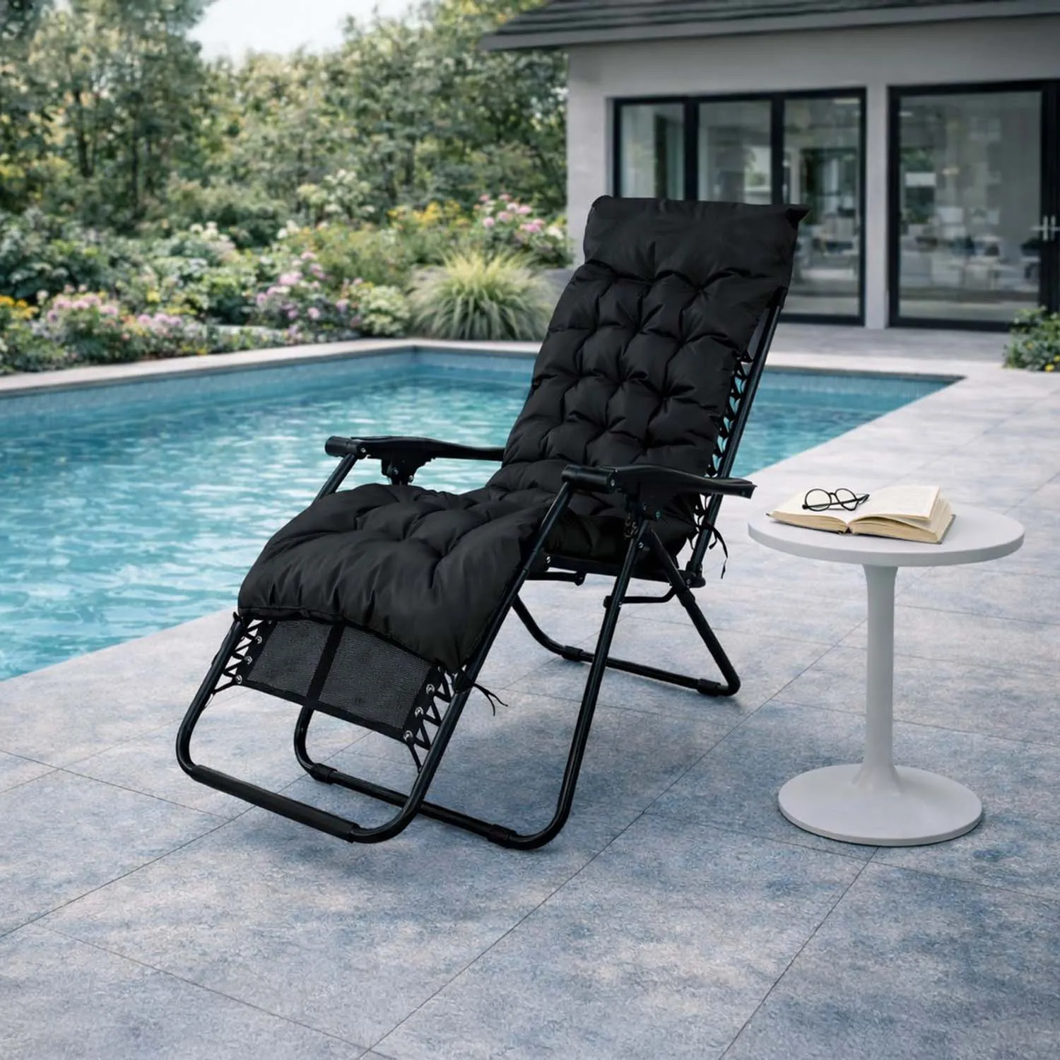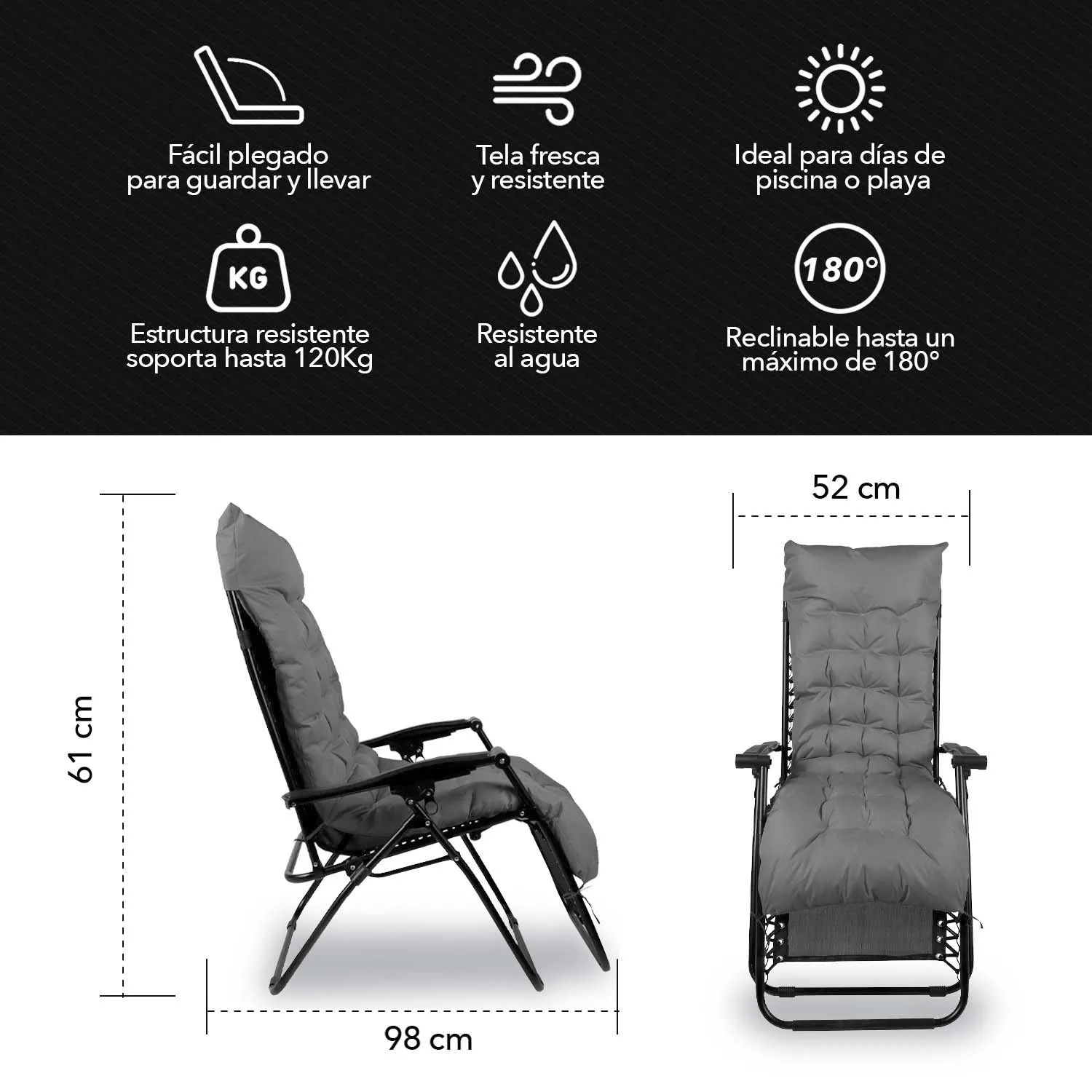 Reposera Plegable con Acolchado Negro